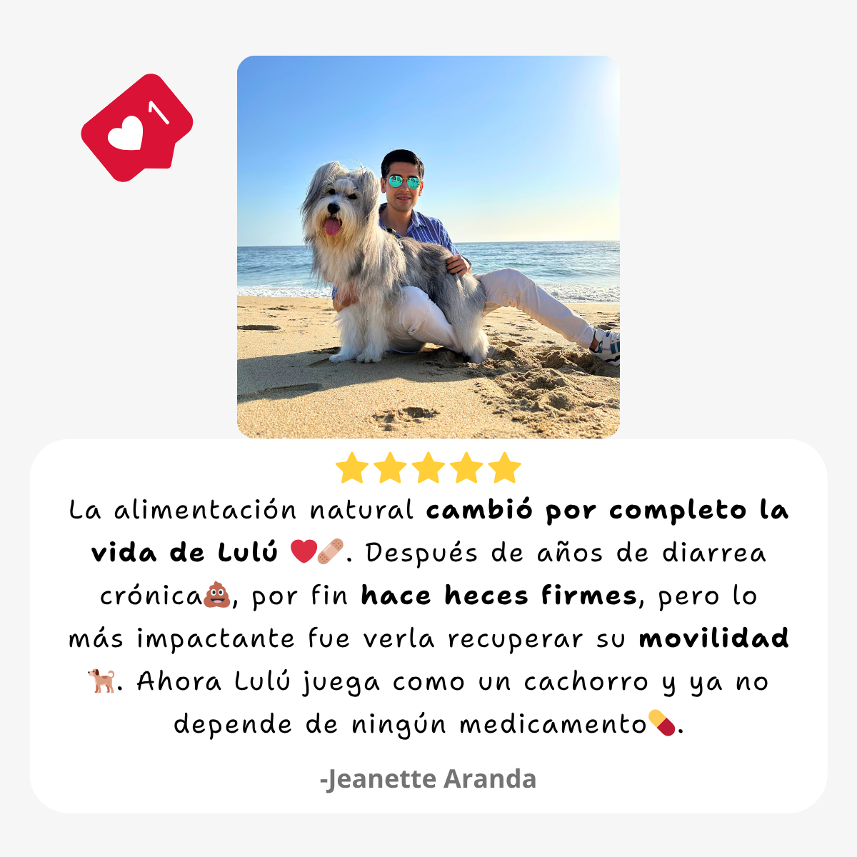 Aun así, cada perro es único. Por eso incluyo una guía de transición gradual para facilitar el cambio desde su comida anterior sin estrés. Y si tu perro necesita ajustes leves, puedes escribirme: te acompaño en el proceso para asegurar que la adaptación sea un éxito.