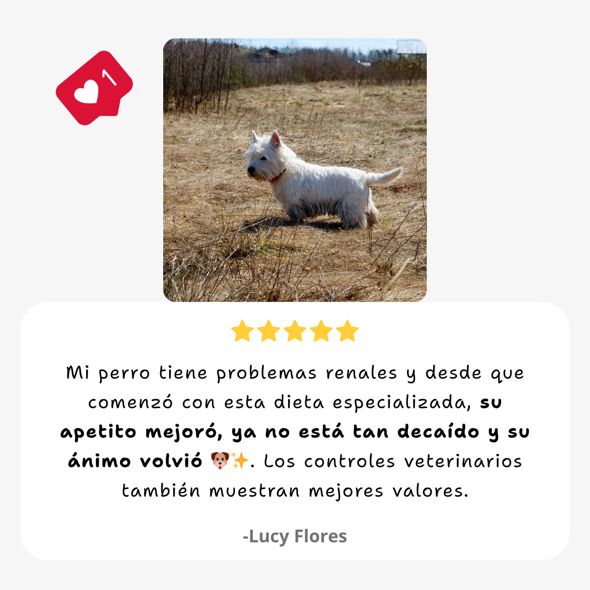 La Dieta de Soporte Renal es un producto digital en PDF que ofrece una dieta diaria natural, completa y formulada bajo los estándares de la AAFCO para perros adultos con necesidades renales especiales.